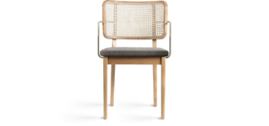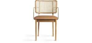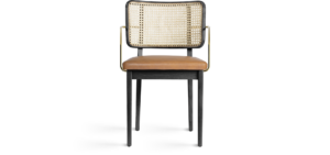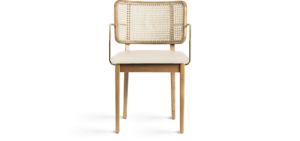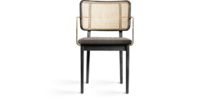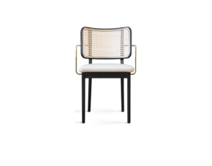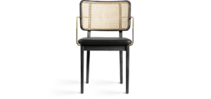 The Red Edition cane chair is nothing less than absolute comfort and familiarity. All the spirit of Parisian brasseries, cosy and elegant, is nestled in this chair which marries materials such as its polished, chic brass armrests with verve.