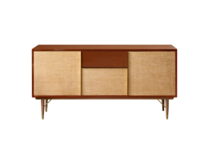 Natural fibre version: doors and drawers lined with finely woven natural fibre. Black or ivory lacquer & brass details.