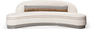 Son élégante silhouette glamour lui confère un statut de vedette. Par ses courbes enveloppantes, soulignées d'un double passepoil de cuir et d'un double ruban de laiton, il assume parfaitement son rôle dans les pièces de réception. Egalement disponible en version large.